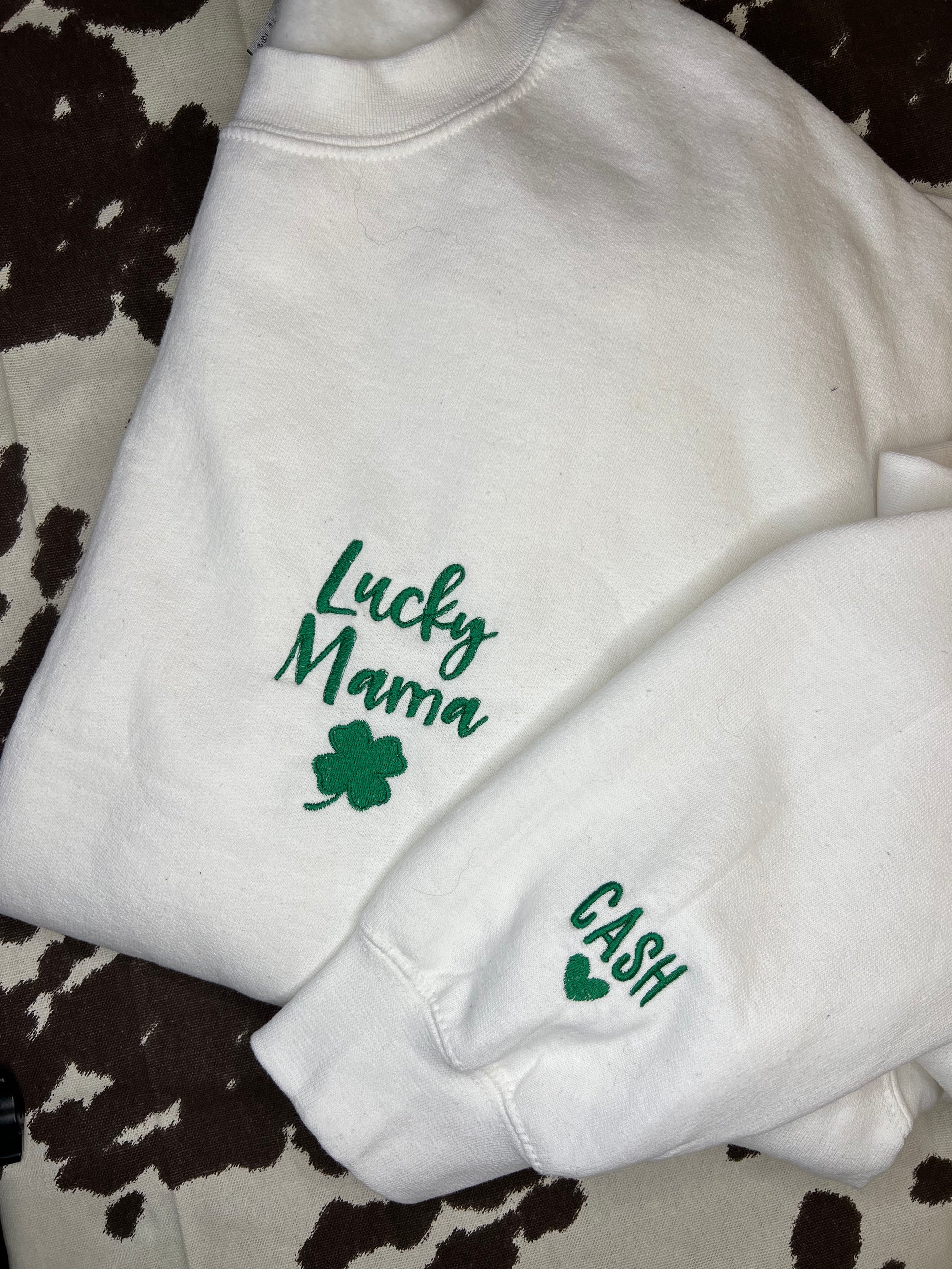 Lucky Mama Name Sleeve Embroidered Crewneck